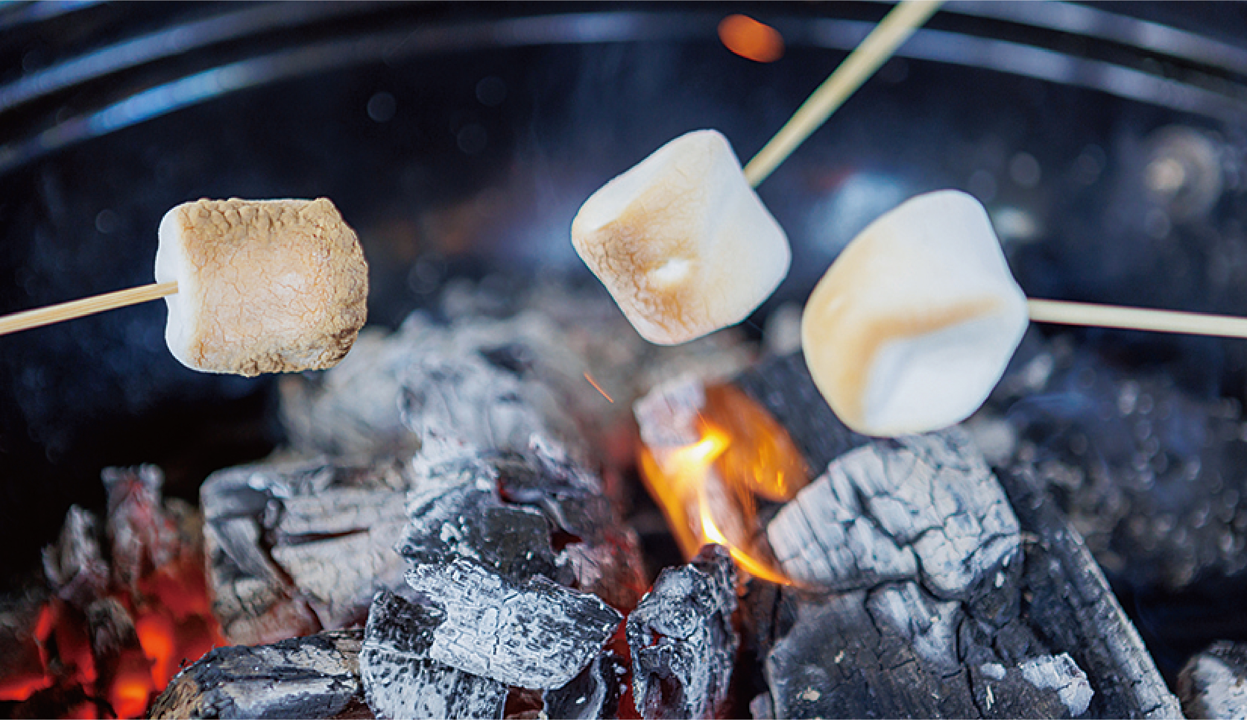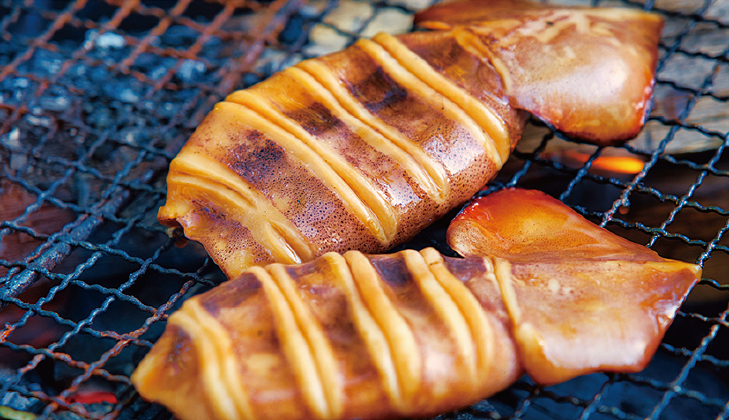 炭火で焼いて、砂糖しょうゆを塗ってかぶりつこう!しょうゆを塗るのは食べる直前に!