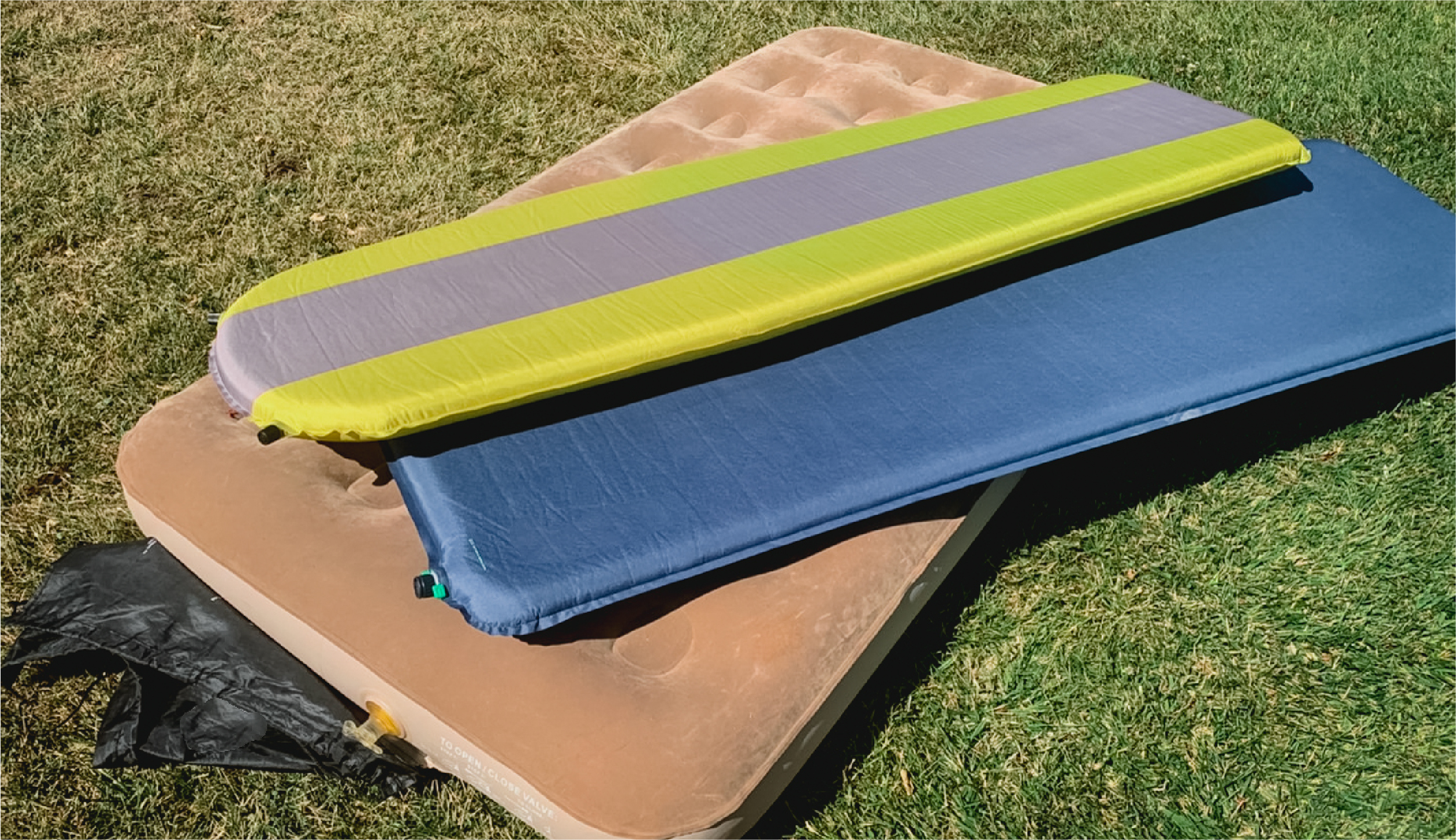 空気を入れて膨らませるタイプのマットを選べば、小さく折り畳んでコンパクトに車内に収納できます。