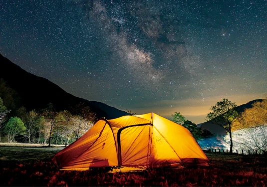 年中利用可能なコテージ村で、満点の星空を眺める