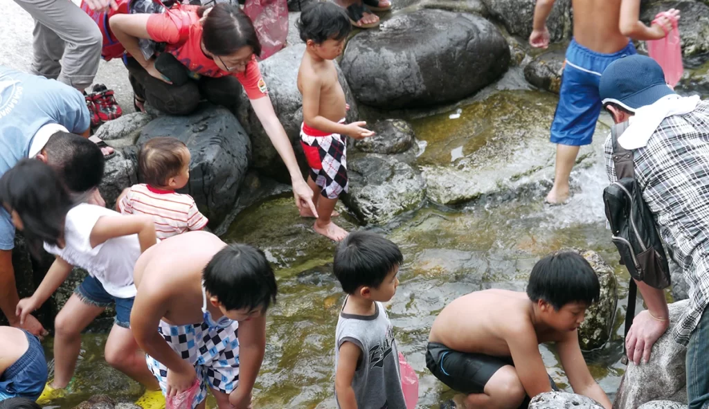ヤナ場で水遊び