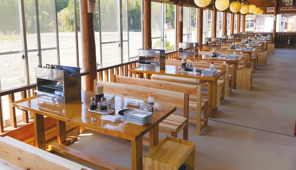 ◆雨や増水の時でも、屋内で楽しくお食事できます。