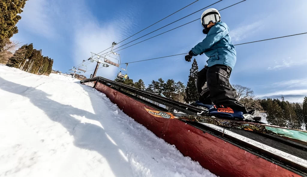 パークエリア「THE ACTIVE」には大小さまざまなジャンプ台をはじめユニークなジブアイテムを設置。