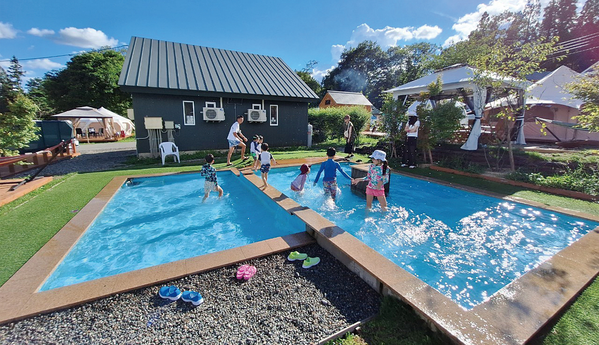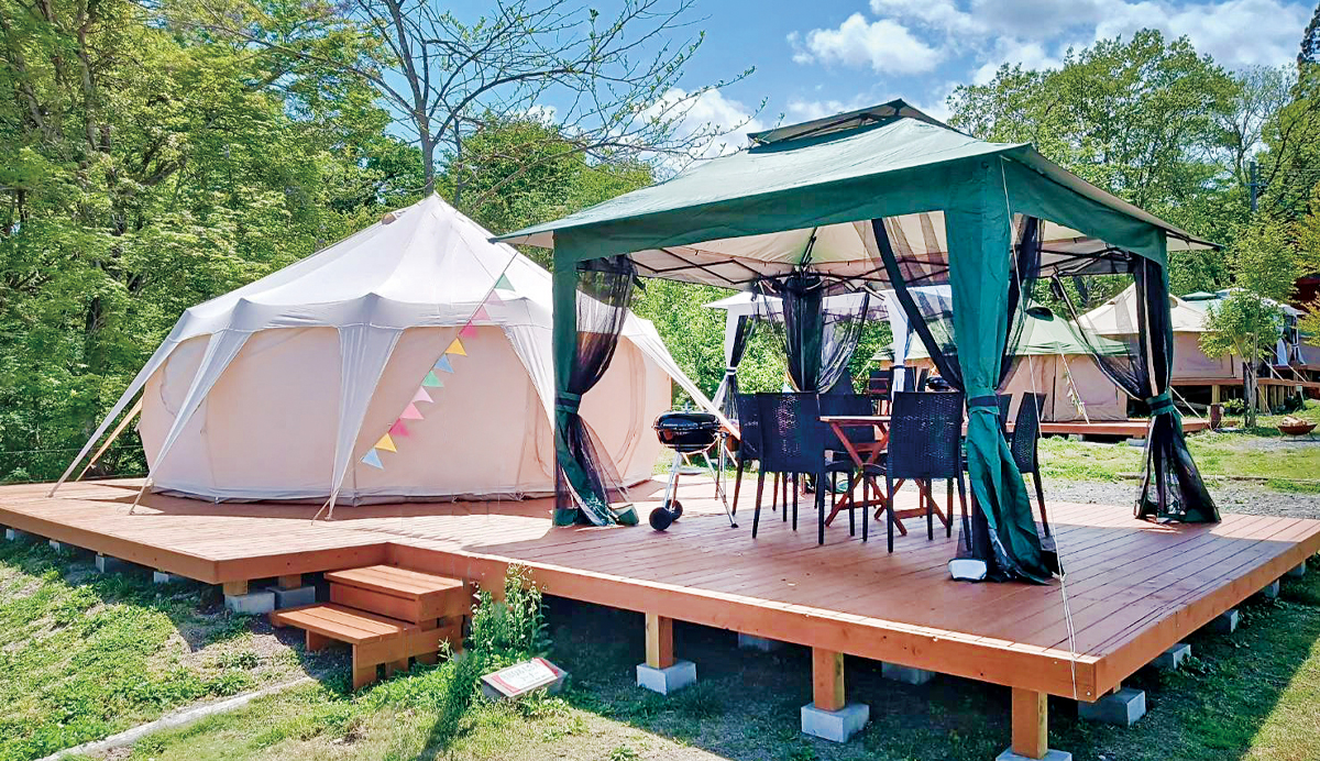 白山連峰を望む標高900mの高原に、コテージ、グランピング施設、キャンプサイト、日帰りBBQをはじめ、無料アルコール付きドリンクバー、ウォーター広場、イベント広場、釣り堀、せせらぎ、バドミントン&サッカーコート、ドッグランも♪