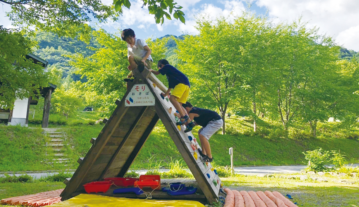 遊具や2つの池が場内に点在。流葉エリアでは自然散策や登山も楽しめます。
