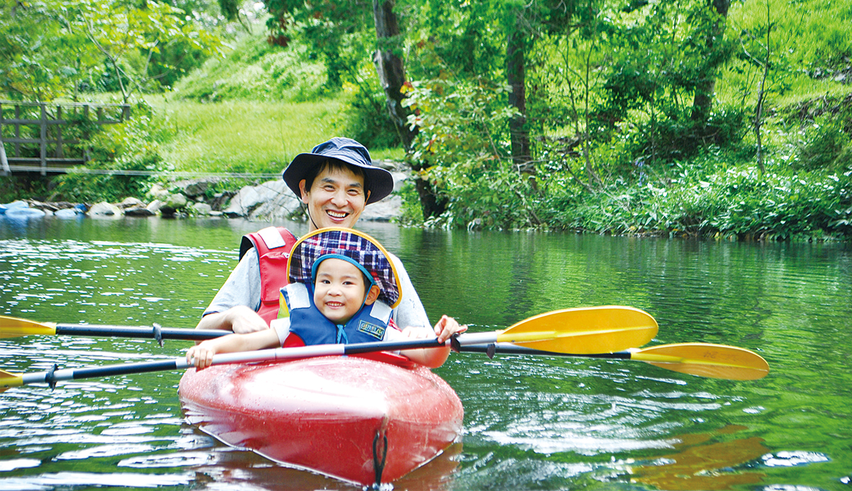 周り一面緑に囲まれた大きな池の中を、カヌーに乗ってのんびり湖面散歩が楽しめます。入り組んだ水路では、ジャングル探検気分も味わえます。