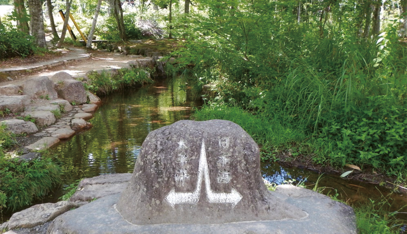 ひるがの高原は標高約900mで、大日ヶ岳から流れてきた水はここを分水嶺として太平洋側と日本海側に分かれて流れていきます。