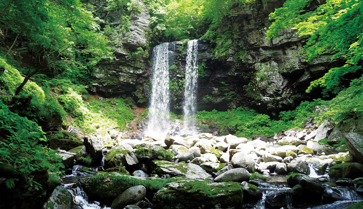 長良川水系最上流部の滝で、2つの流れが寄り添うように落下する様子から「夫婦滝」と呼ばれています。